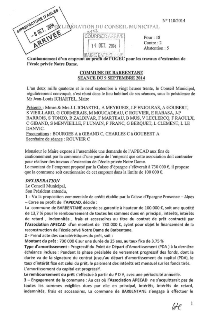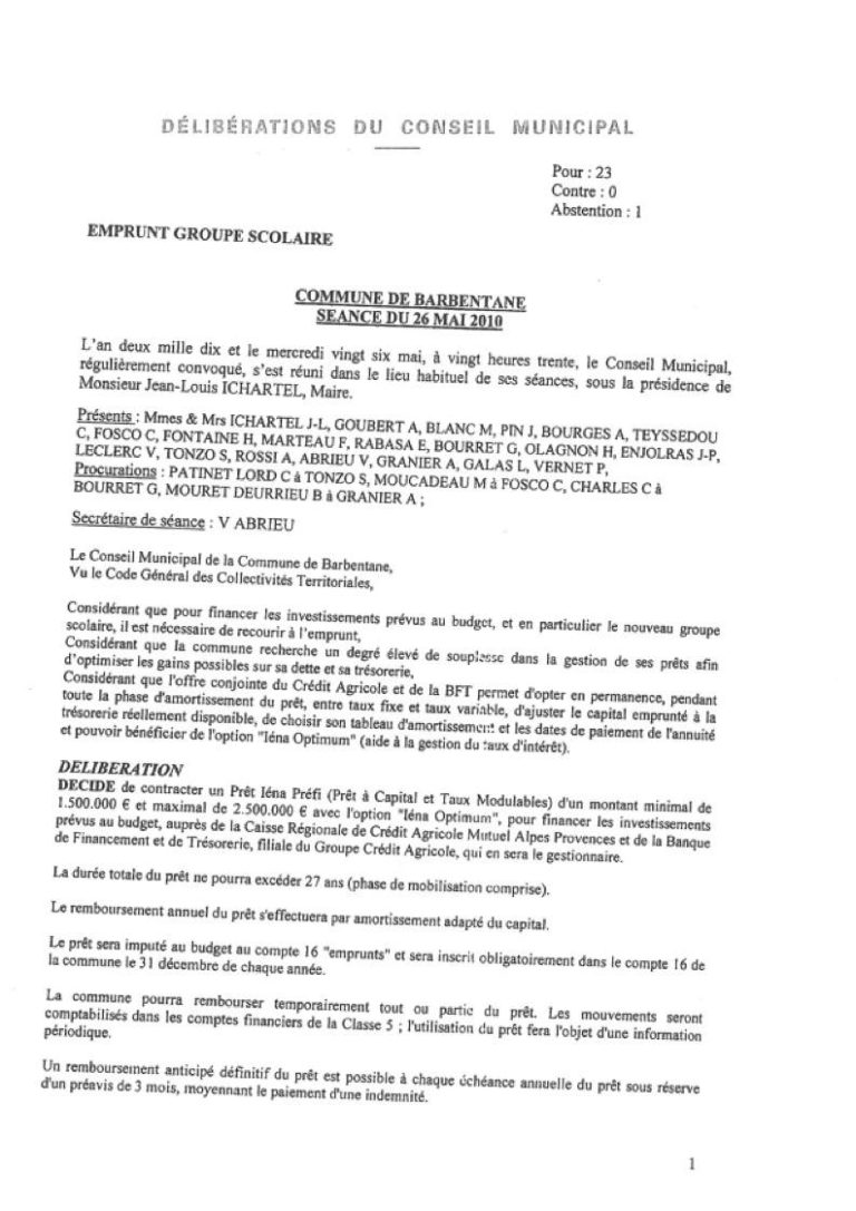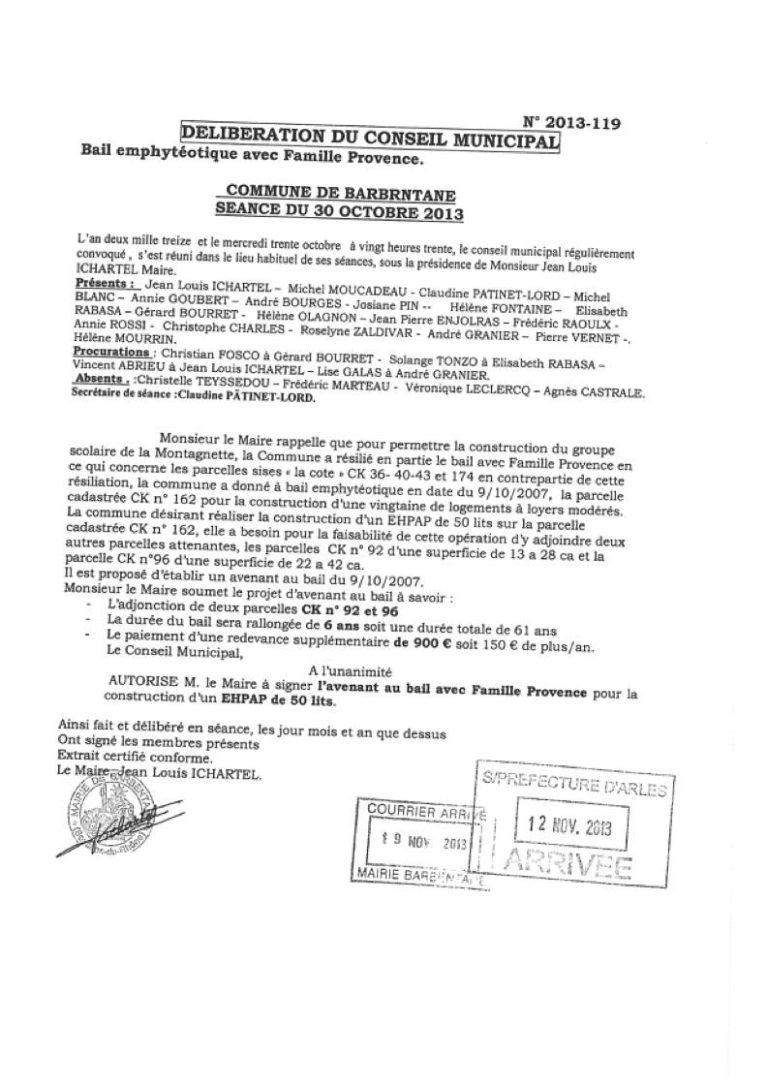 Vous trouverez ci-joint l'extrait du conseil municipal auquel il est fait référence.
