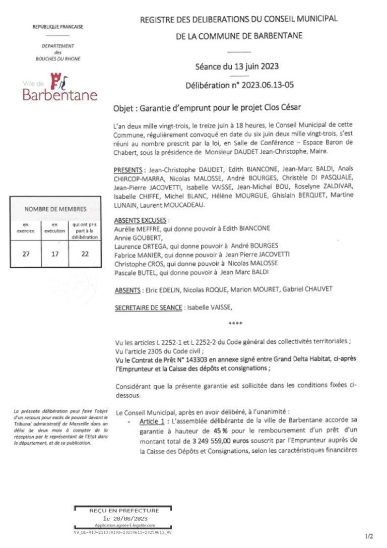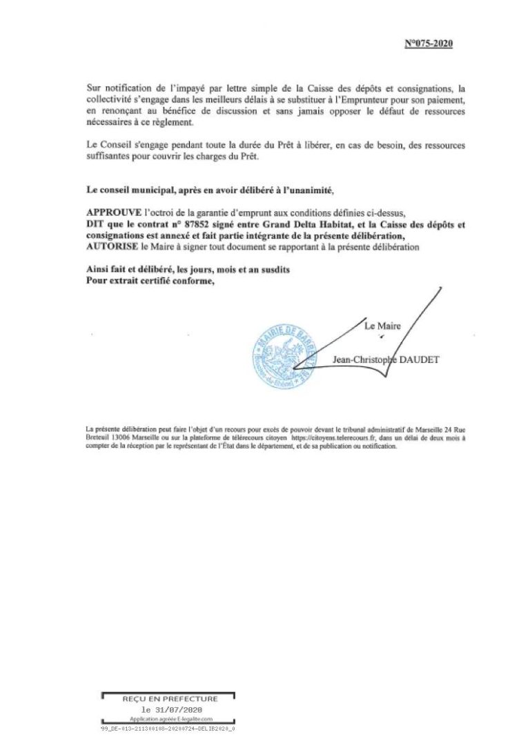 Les élus ont bien reçu les éléments, dont la lettre de Grand Delta Habitat, et le processus est clair : il s’agit d’abord d’un accord de principe, puis d’une seconde délibération après consultation de la banque.