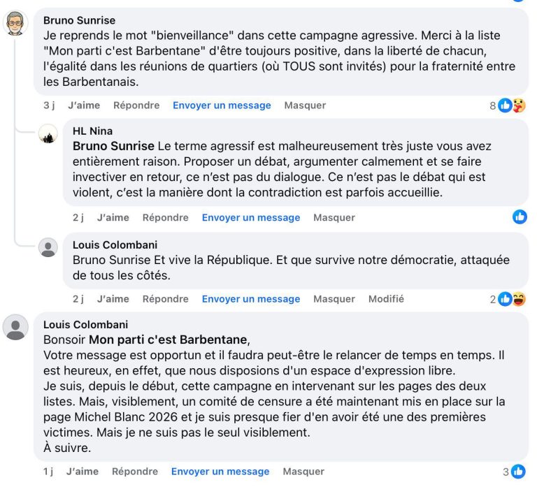 😠 Nous constatons amèrement que malgré nos différents appels pour débattre de façon sereine et apaisée devant tous les Barbentanais qui ont fait l’objet d’un refus de nos adversaires, de l’effacement des commentaires sur leur compte Facebook de campagne qui peuvent leur apporter la contradiction, ces derniers continuent d’utiliser les procédés les plus infâmes pour vous manipuler.