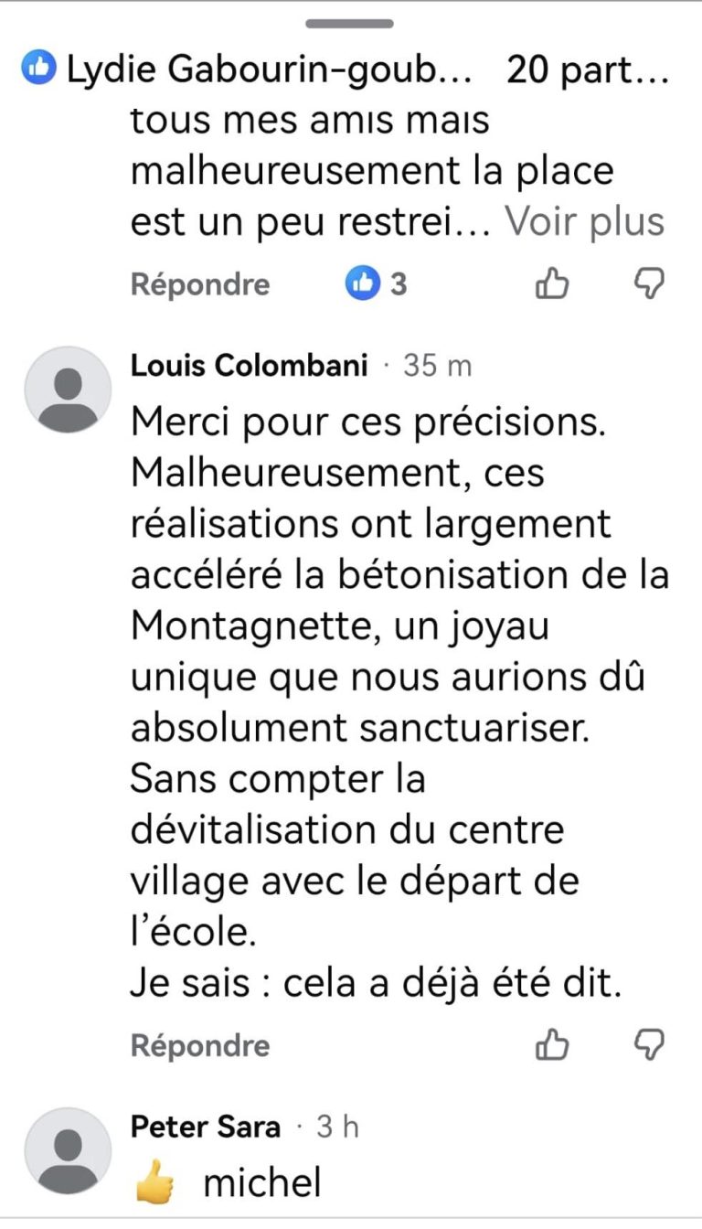 2) Un mandat “plombé” dès le départ. Il rappelle aussi qu’avec 3,6 M€ à racheter, plus des promesses telles que requalifier Rampale (~1,5 M€) ou réhabiliter l’église (~2,5 M€), on arrive très vite à un mandat financièrement “consommé” en investissements, et que toutes les nombreuses autres promesses du groupe de Michel Blanc ne pourront pas être réalisées.