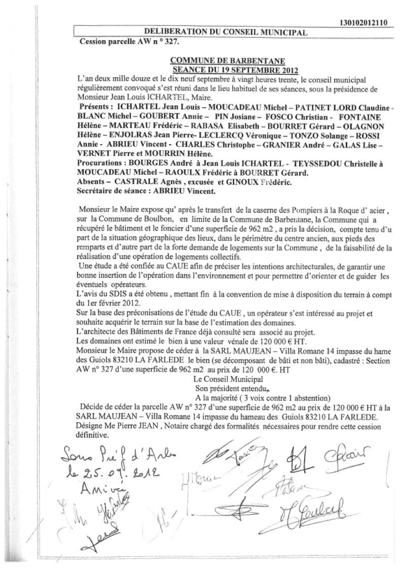 Vous trouverez ci-joint l'extrait du conseil municipal auquel il est fait référence.