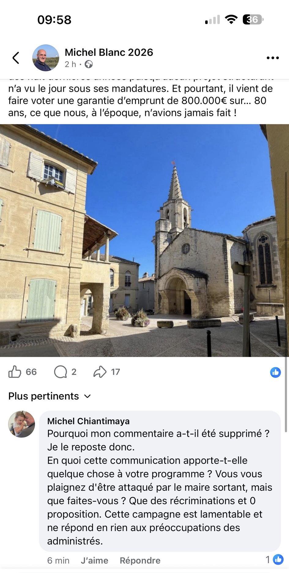 😠 Nous constatons amèrement que malgré nos différents appels pour débattre de façon sereine et apaisée devant tous les Barbentanais qui ont fait l’objet d’un refus de nos adversaires, de l’effacement des commentaires sur leur compte Facebook de campagne qui peuvent leur apporter la contradiction, ces derniers continuent d’utiliser les procédés les plus infâmes pour vous manipuler.
