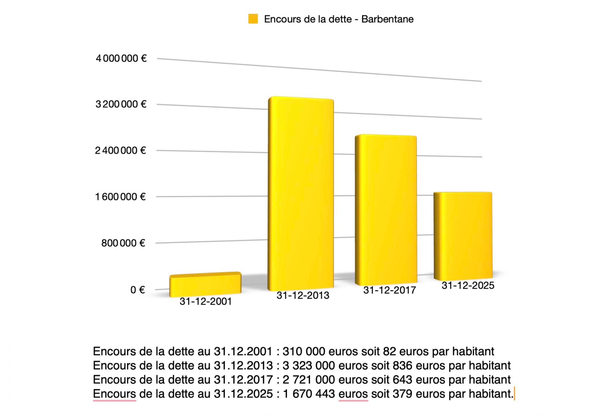 Sur le mandat 2020–2026 : 7,9 M€ d’investissements réalisés, avec 543 000 € d’emprunt seulement.