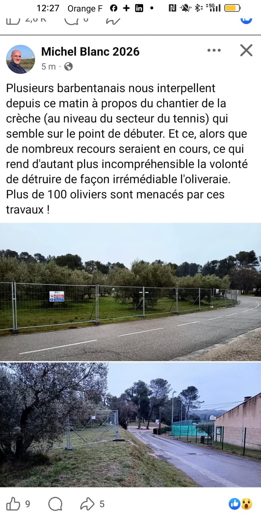⚠️⚠️ Dernière minute ! Le groupe Michel blanc vient de poster sur le sujet de la crèche et annonce que « plusieurs barbentanais nous interpellent depuis ce matin au sujet du chantier de la crèche » et comme par hasard, ce sont les mêmes photos qui illustrent ce post et celui de ce matin.