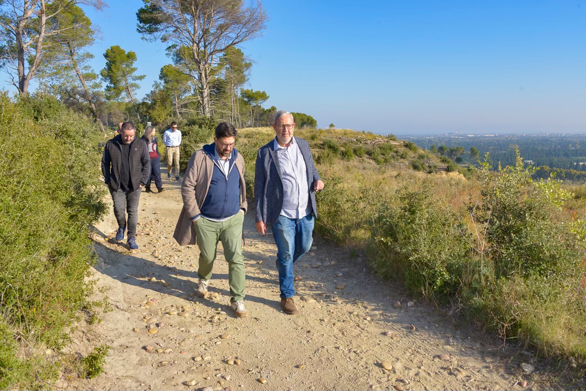 18 Oct. 2025 - Jean-Christophe Daudet a accueilli à Barbentane Tiago Rodrigues, directeur du Festival d’Avignon, avec qui il entretient une collaboration suivie autour de l’itinérance du Festival et du spectacle « Que ma joie demeure » joué en 2023 au cœur de la Montagnette. Ensemble, ils ont constaté la réussite de l’opération « On se lève pour la Montagnette », avec plus de 7 500 arbres feuillus replantés sur les zones touchées par l’incendie de 2022, dont un vallon offrant désormais un véritable amphithéâtre naturel avec vue sur le mont Ventoux et le Palais des Papes, ouvrant des perspectives culturelles pour l’avenir.